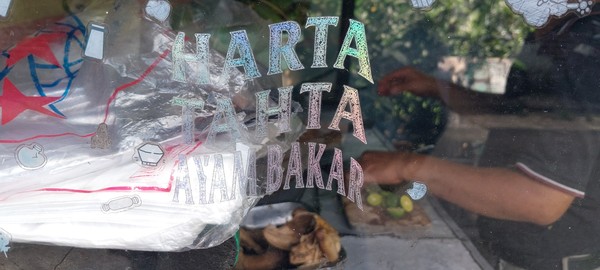 Yang menarik perhatian Penulis sekarang selain spanduknya adalah stiker di kaca gerobak bertuliskan "Harta Tahta Ayam Bakar" โ cukup percaya diri dan langsung membuat ekspektasi naik. Mas Paijo sudah berjualan sejak 2009, bukan usaha yang baru merintis. Biasanya berjualan mulai dari sekitar jam 10 pagi hingga sore hari. Untuk lokasi lengkapnya, silakan klik link Google Maps di sini.